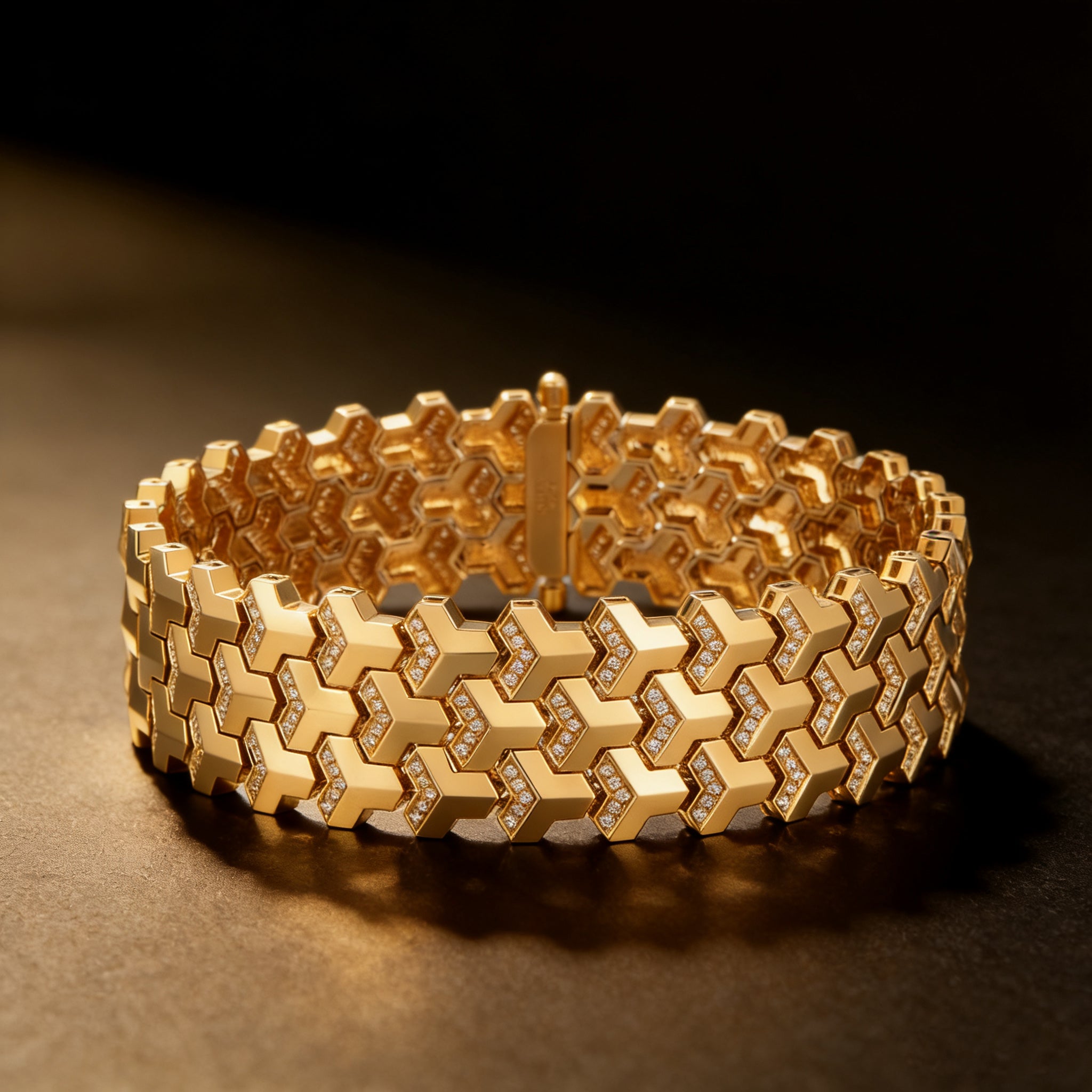 Step into your daily battles with the Mountain Grain Armor Bracelet. Inspired by the interlocking strength of ancient plate armor, this piece is reimagined for the modern leader