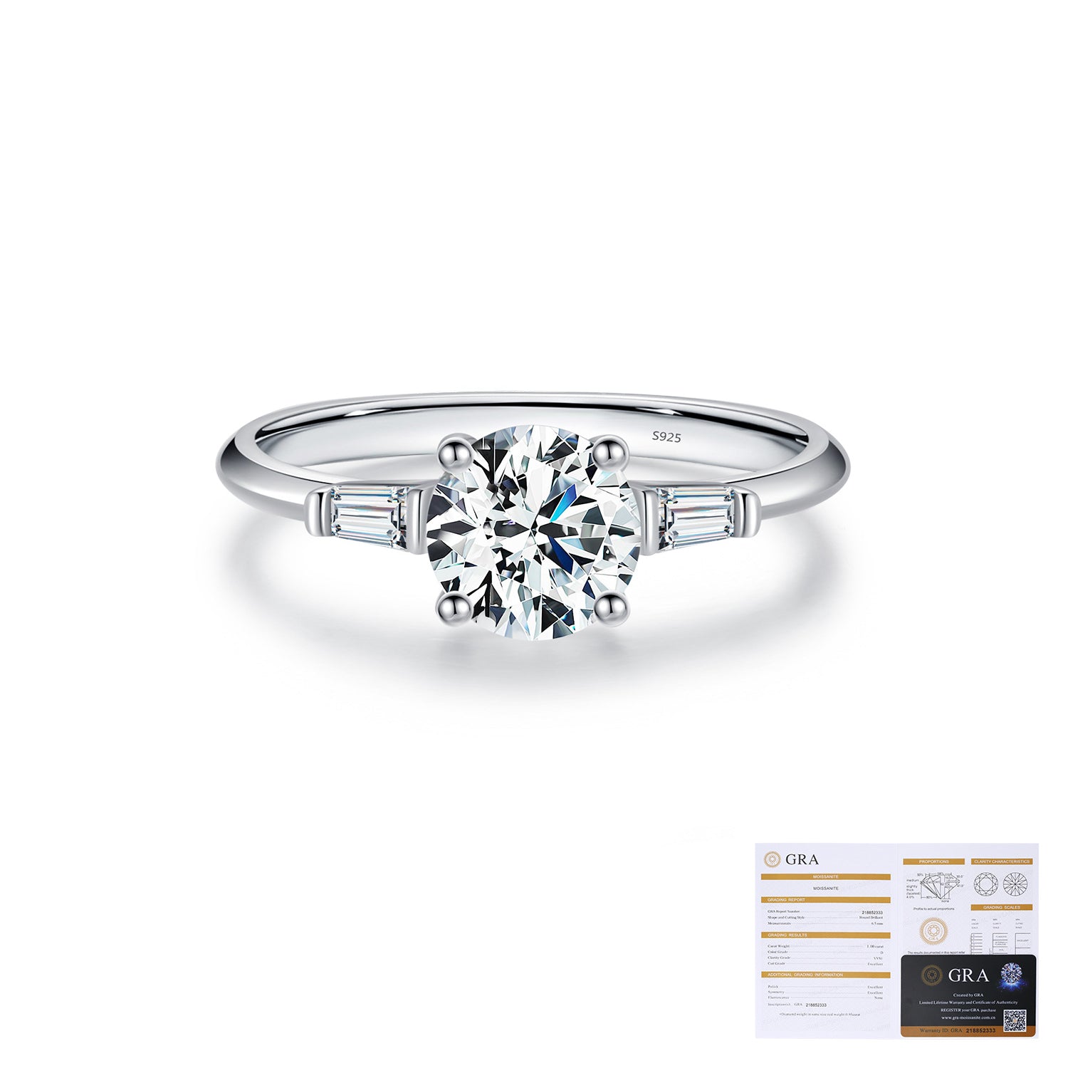 • Comes with a GRA moissanite certificate