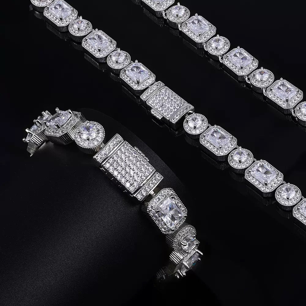 Elevate your jewelry collection with this striking 10mm square and round tennis chain, where geometric precision meets timeless elegance. The alternating square and round links create a dynamic visual rhythm, sparkling brilliantly in the light, making it a versatile and stylish piece for any occasion.