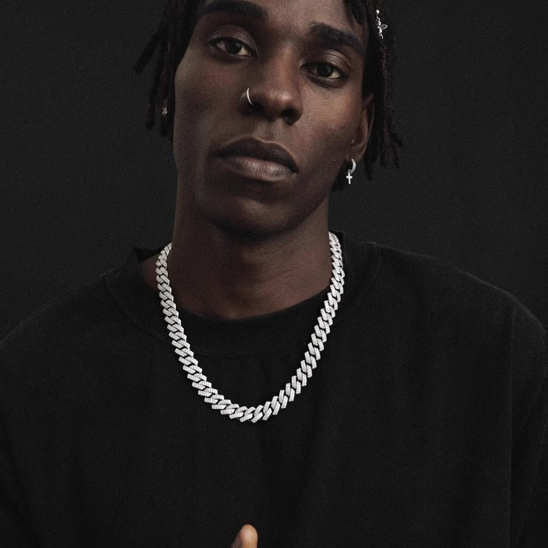 This diamond Cuban bracelet is the perfect choice for a gorgeous street style. Exquisite diamonds are inlaid on a gorgeous silver chain, exuding a textured glow. Bring you an unparalleled fashion experience and highlight your noble taste. From now on, you are the king of street fashion.