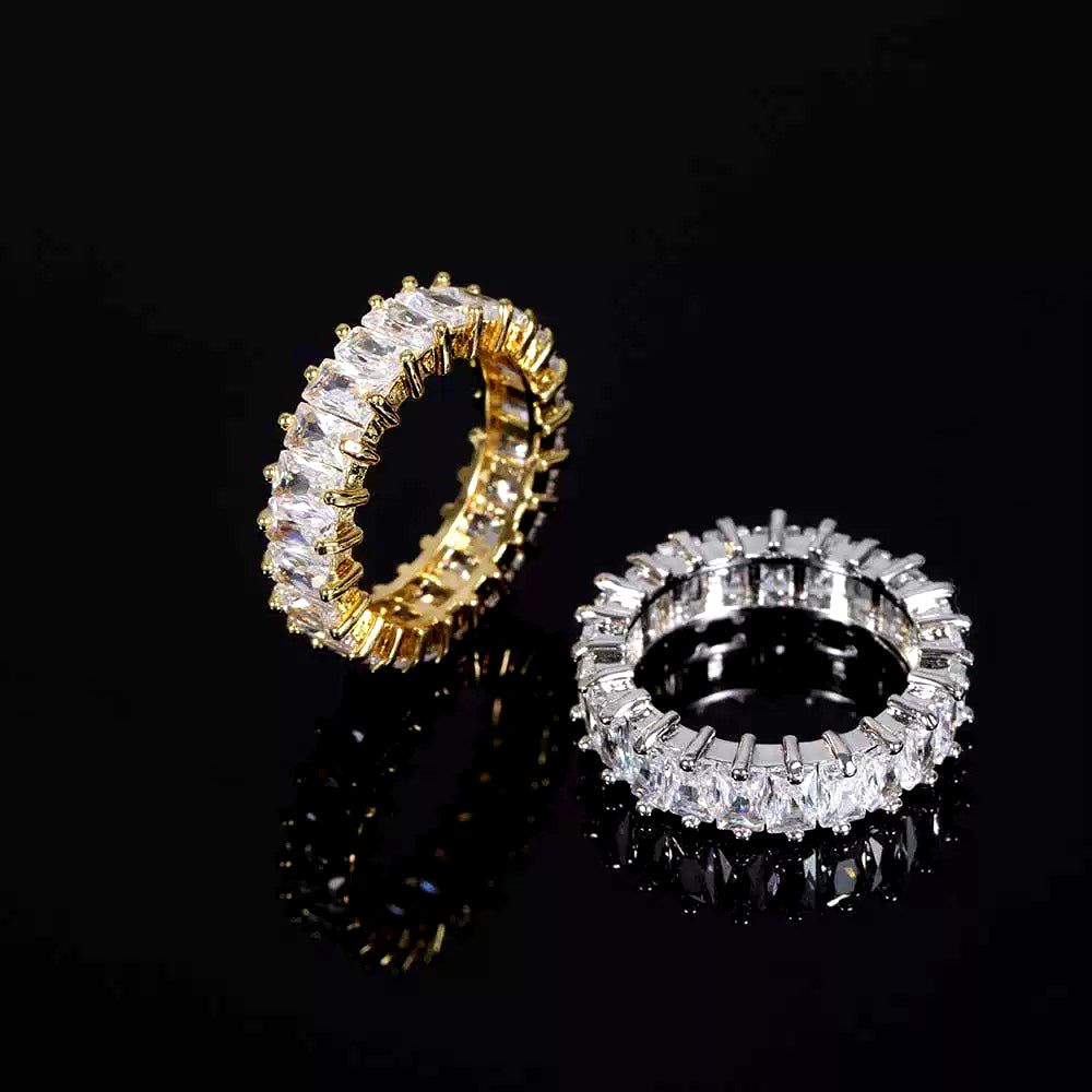 This emerald-cut diamond ring features RadiantGlow-Cut technology, which provides dazzling brilliance and a higher refractive index than other zircons