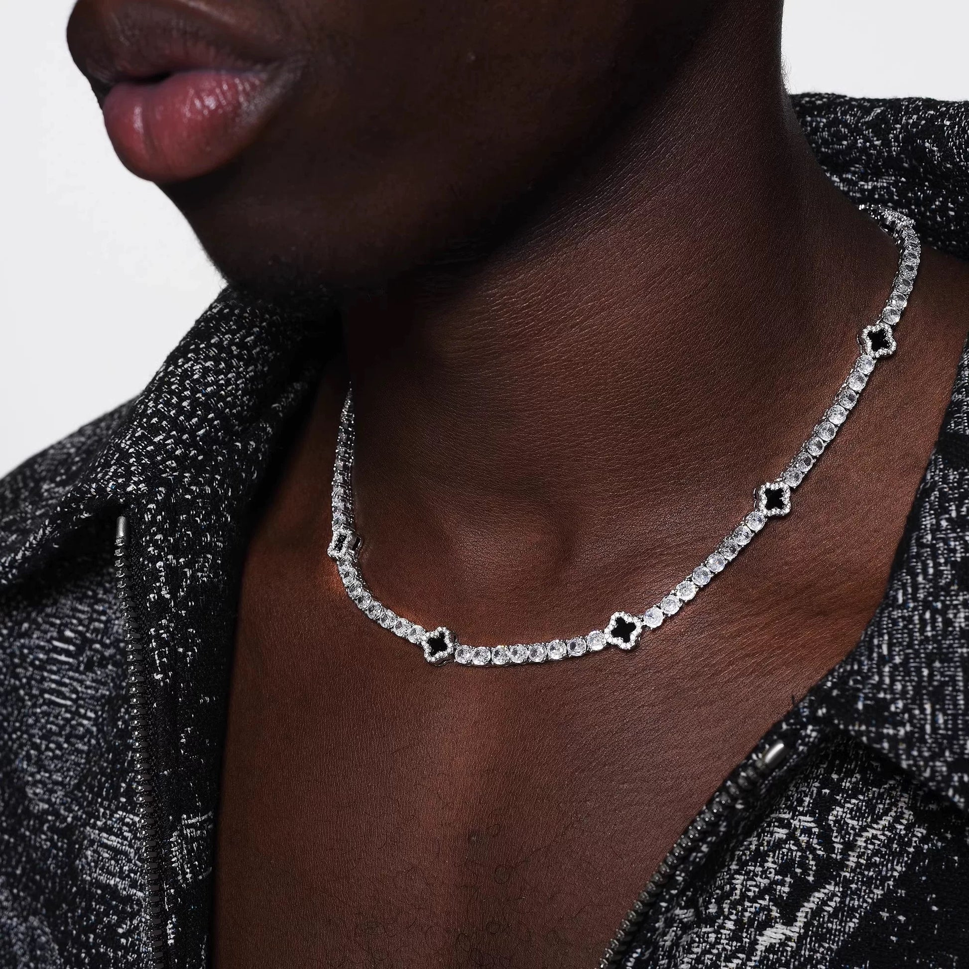Discover the Four-Leaf Clover Tennis Chain, a stunning accessory that seamlessly blends tennis chains with a symbol of good fortune. Featuring four prongs set with AAAAAA+ grade zircons, this chain exudes a rich, sparkling fire that adds a sophisticated touch to any look while embodying the power of good fortune. Don't settle for ordinary—choose an accessory that elevates your look and brings positive energy wherever you go. Make the Four-Leaf Clover Tennis Chain your new signature accessory today!