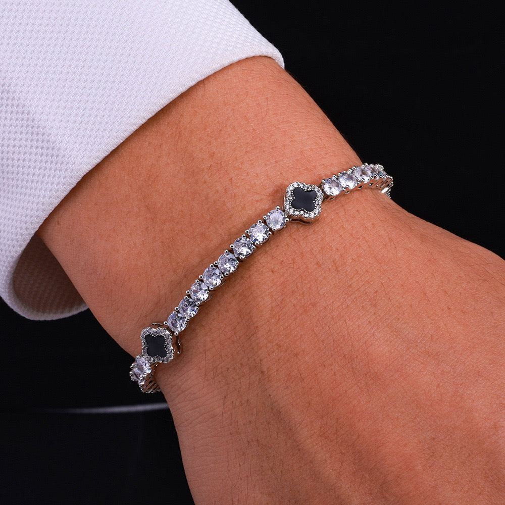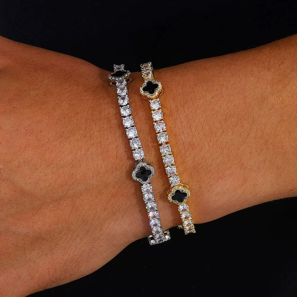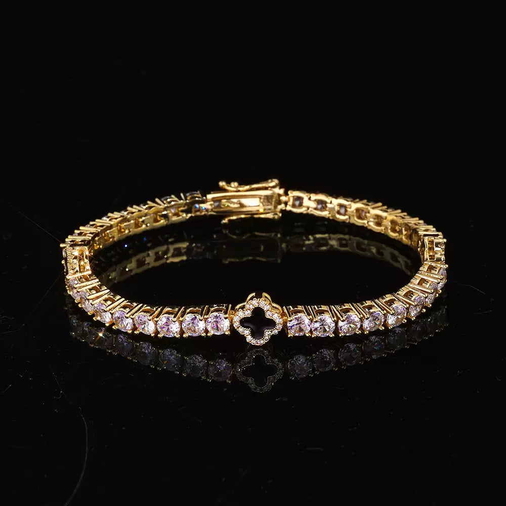 • This four-leaf clover tennis chain features a four-prong basket setting and AAAAA+ grade zircons.