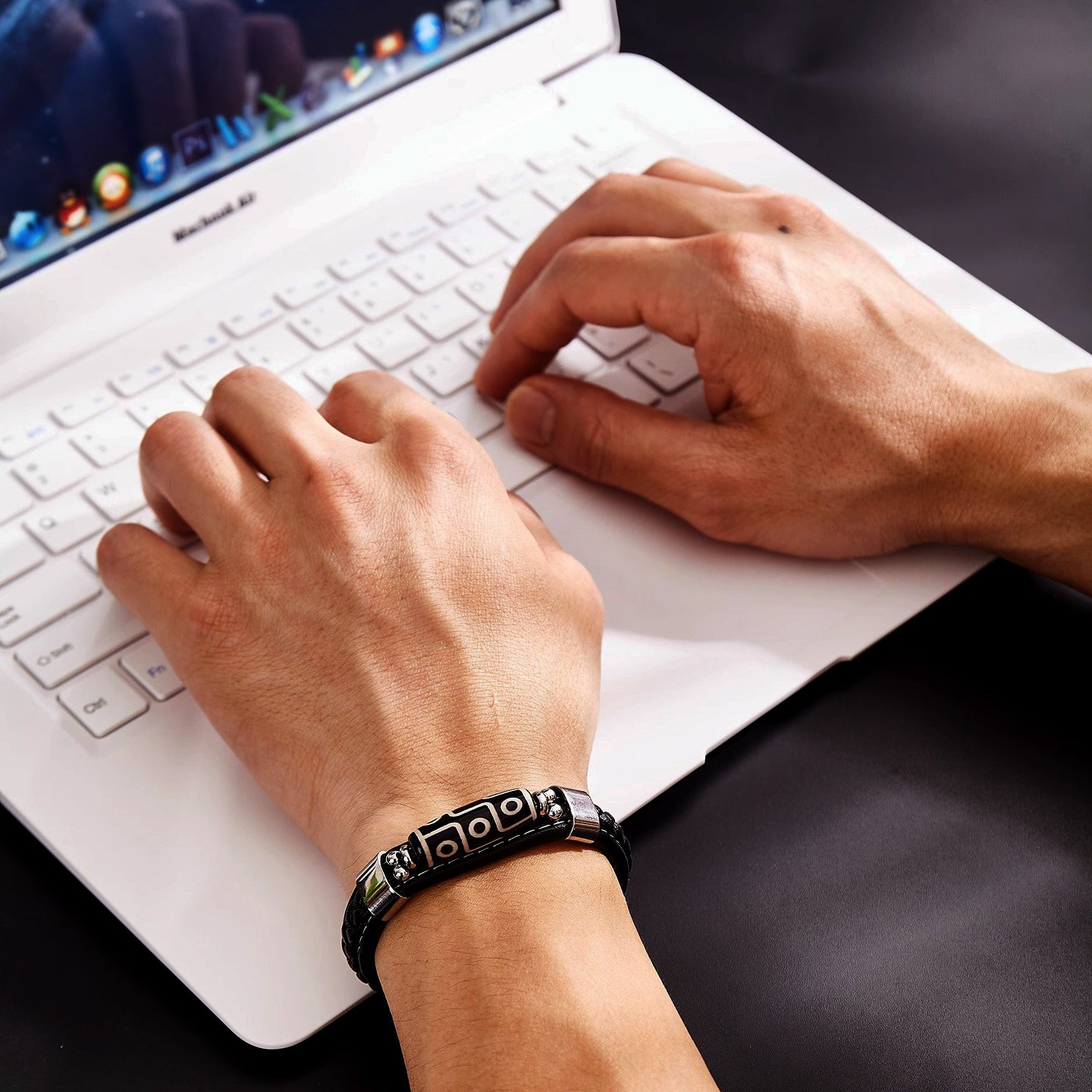 The nine-eye ceramic and leather bracelet perfectly blends exquisite craftsmanship with modern design to elevate your fashion sense. This bracelet cleverly blends durable ceramic with soft microfiber leather, creating a striking contrast that complements both casual and formal looks. The nine-eye ceramic element adds a unique touch, while the leather ensures all-day comfort. It's perfect for those seeking a simple and calming accessory.