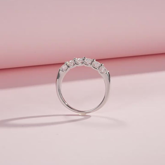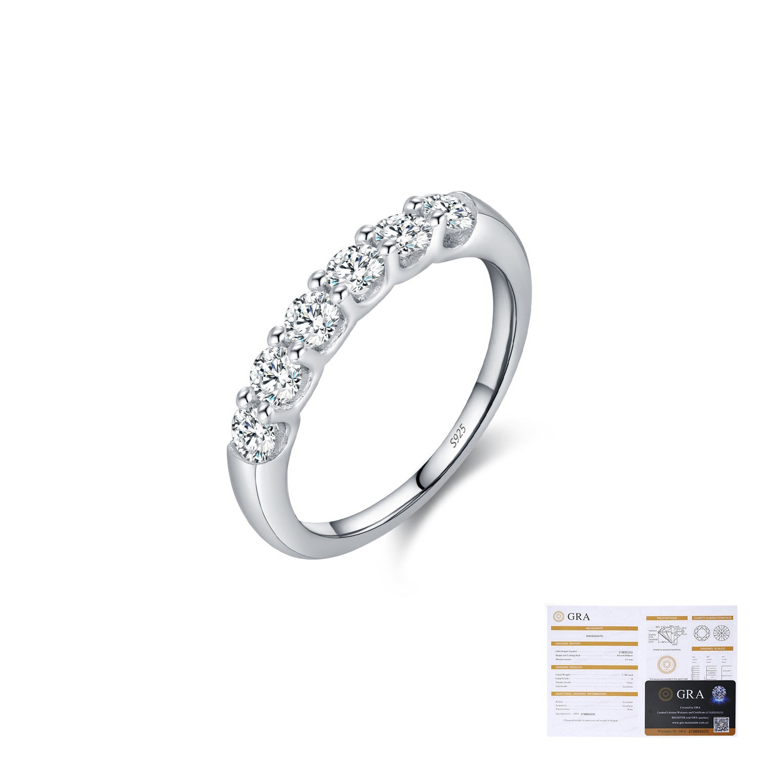 Elevate your style with this luxurious sterling silver moissanite ring, featuring six moissanite stones arranged in an array. Set in premium sterling silver, these six dazzling moissanite stones exude a lasting, radiant elegance.